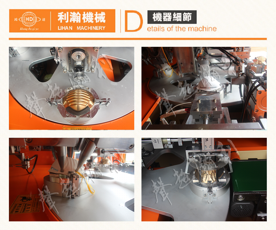 “鴻達牌”全自動杯型口罩鼻梁條耳帶焊接機 (第三代)是利瀚公司精研出的一款行業內新成果,杯型口罩鋁制鼻梁條焊接與耳帶焊接的自動化設備,該設備在利瀚企業誕生,代表著業內研發成果; 該設備是利用PLC程式設計,人性化電腦管理程序,采用良好的材料進行裝配,無論是電氣設計或電腦管理系統都是成熟的工藝,為客戶打造周到和符合標準的設備; 放入杯型口罩模具上,自動化精密旋轉式轉盤系統,將會完成兩項制作工藝分別是口罩鼻梁條(鋁條)焊接和口罩耳帶焊接,輸出成品。制作出來的產品美,符合口罩質量標準,生產效率升高,節省人工.