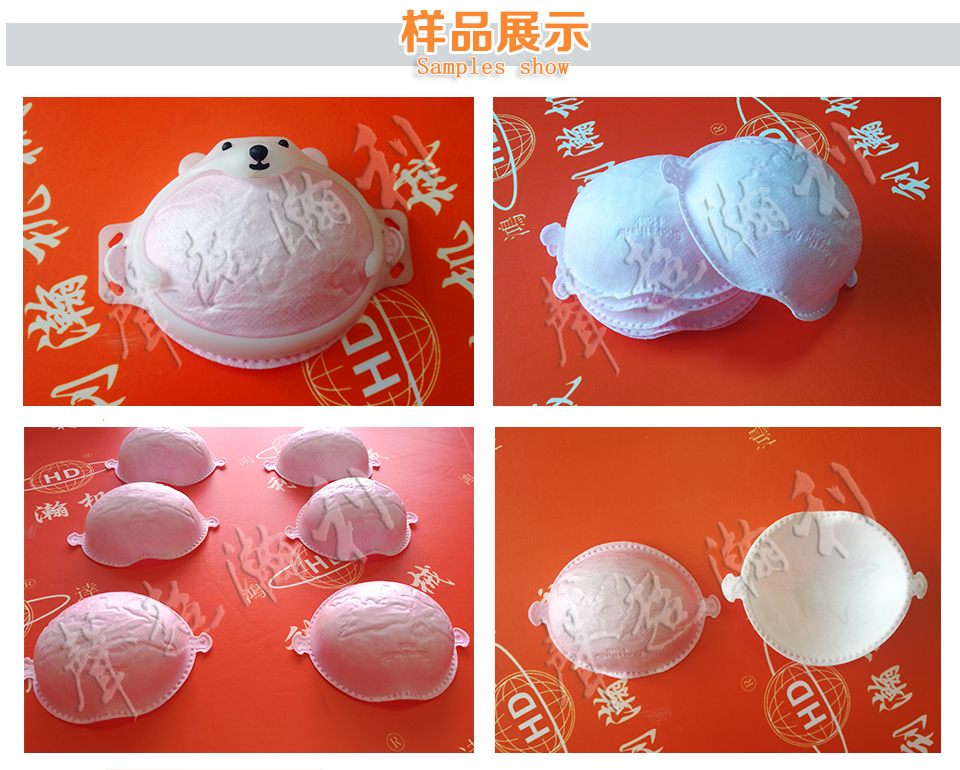 本機是依據客戶的特殊要求而非標定制的。該機主要生產兒童款杯型口罩,一人可以操作多臺,機器運轉穩定,效率快。改變了傳統半自動生產的方式,全自動化操作;機器從原料--熱壓定型--焊接形狀--子母沖切--成品輸出,不需要人工.
