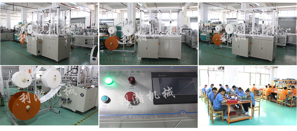 鴻達牌”全自動杯型口罩機II,是采用超聲波系統和利用熱壓原理集成的一款制造杯狀口罩的設備,本機適用制作杯型口罩、N95口罩等;使用整卷材料2~6層(如:針刺棉、無紡布和過濾材料等)自動上料;本機自動化程度高,PLC控制系統、觸屏設定參數和操作簡單。
