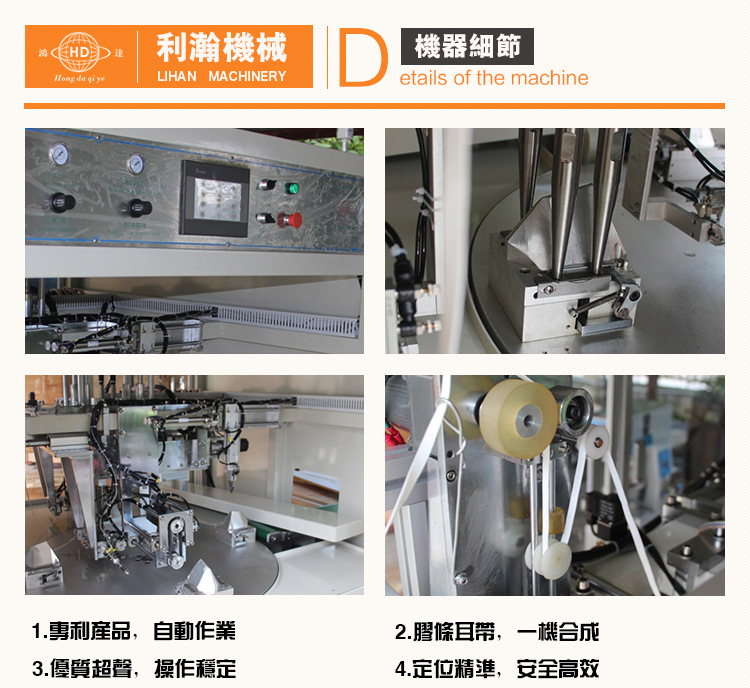 鴻達(dá)牌“轉(zhuǎn)盤(pán)式折疊口罩耳帶點(diǎn)焊機(jī)”是廣東利瀚機(jī)械精研出的一款折疊口罩專(zhuān)用設(shè)備,該設(shè)備能夠點(diǎn)焊折疊型的恣意一款樣式的口罩耳帶,臺(tái)灣原機(jī)超聲波體系,點(diǎn)焊精準(zhǔn)度高和健壯健壯,是一款老練安穩(wěn)的折疊型口罩專(zhuān)用設(shè)備。