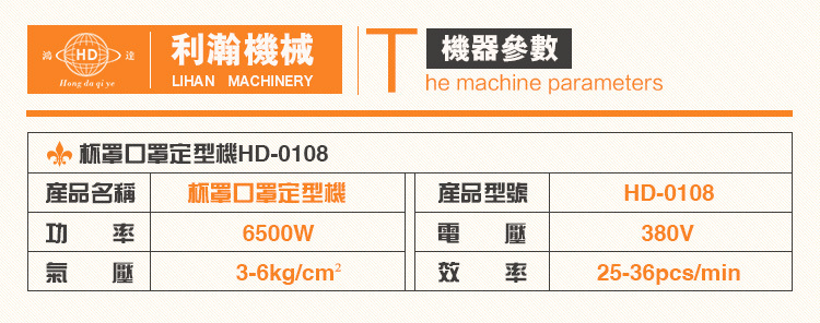 杯型口罩定型機,又稱N95口罩熱壓成型機,該機主要是使用熱壓定型的原理來完結 杯型口罩內層針剌棉定型的工藝。該機一出六雙工位規劃(單/雙人可獨立操作)本機將傳統比較冗雜的口罩出產工藝進行技能革新,到達從原材料高效定型的作用,經過核心技能工藝規劃,然后有用的維護口罩在定型過程中防止遭到的損傷,然后使出產的各款口罩到達歐美嚴厲的檢測規范,是出產N95、防塵、各型體杯型口罩的抱負配套設備。