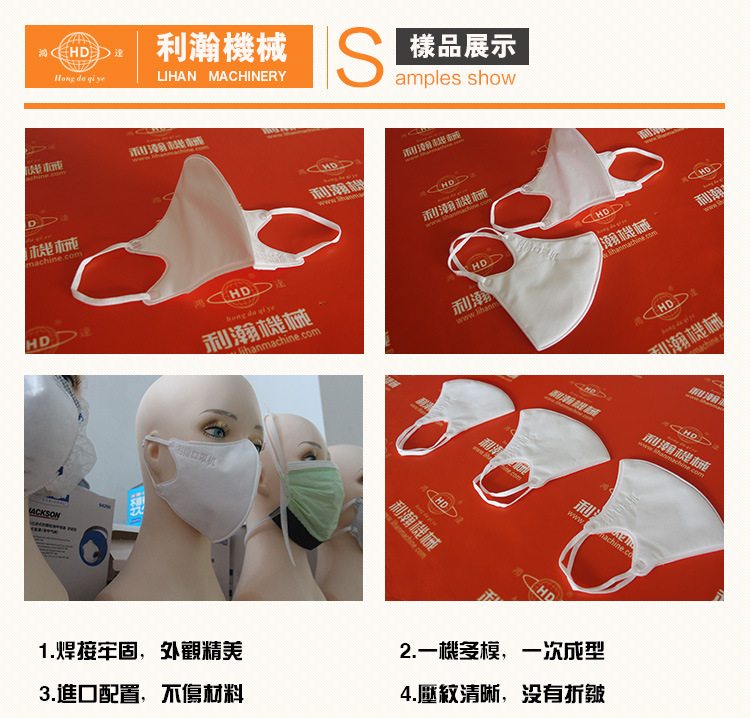 1.主動(dòng)上鼻梁條、沖孔、印刷、上耳帶一體完結(jié),一人多機(jī)(可根據(jù)需求制造內(nèi)、外、膠、鋁各類型鼻梁線)。