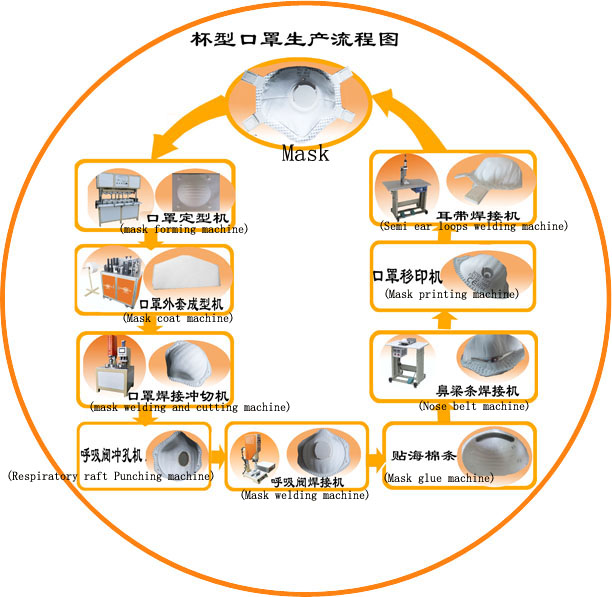 杯型口罩生產(chǎn)示意圖: