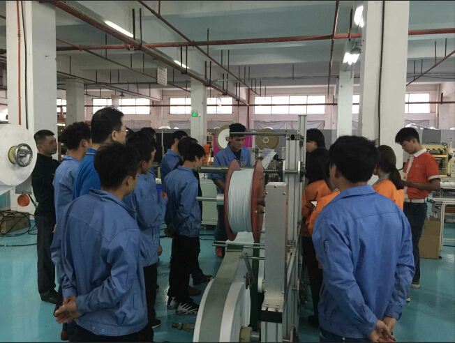 陳組長對本公司口罩系列有著豐富的經(jīng)驗,主要講解了公司的平面口罩設備產(chǎn)品性能和運用范圍,比如性能方面:公司的口罩機用的是日本、韓國元器件,該設備是由程序控制完成自動化生產(chǎn),操作簡單,通過超聲工藝來制造平面口罩,是生產(chǎn)平面口罩的設備,從原材料入料到生產(chǎn)成品均為自動化作業(yè), 材料的層級可以從一層材料到七層材料,因為是超聲波工藝,材料起碼要包含30%以上的化纖;平面口罩機主要分為內(nèi)耳帶和外耳帶還有綁帶的較為運用的多,設備一般由一臺本體機加一臺或者多臺上耳帶機拼接;可根據(jù)客戶的要求進行添加耳帶焊接機的類型.