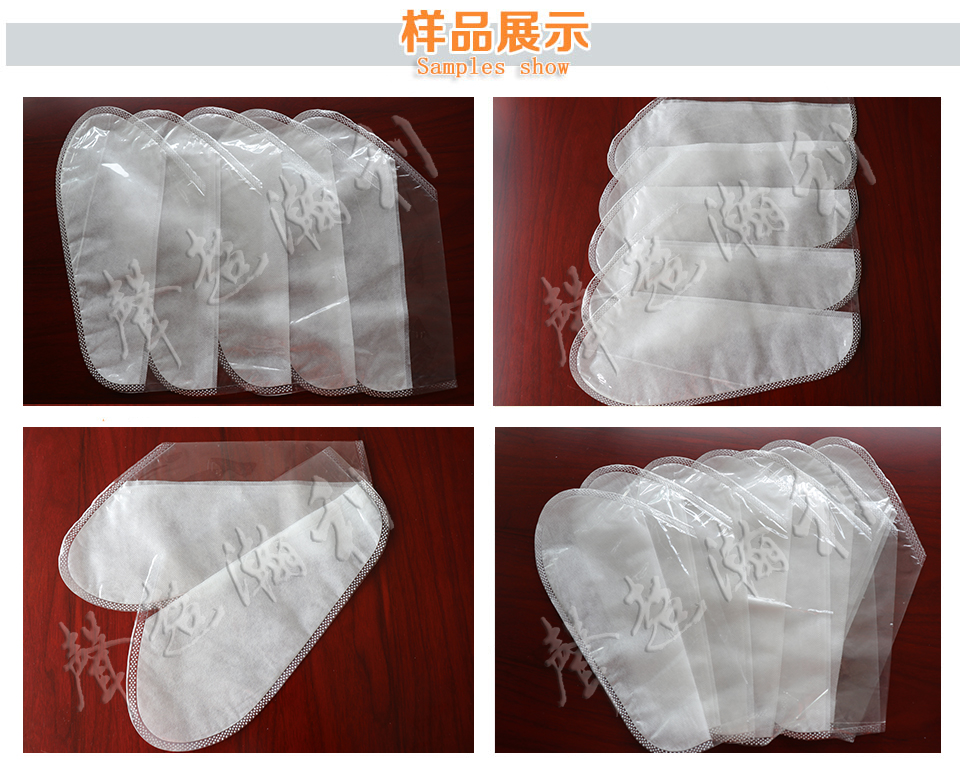 全自動超聲波手膜機,是利用超聲波無線熔接的原理,此機將PP、PE材料與無紡布進行對拆無線焊接,整機由送料至成品完自動化,所生產處的足套熔點平整、不滲水、不硬化.