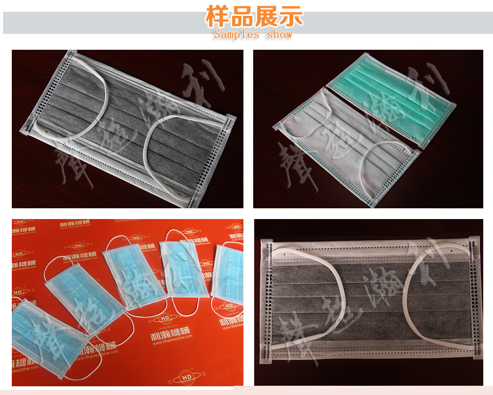 2、只要一各操作員將口罩本體一片片置于輸入送帶治具上,其余后續動作至成品完成皆由機臺自動操作完成耳帶方向及款式可根據客戶要求來配備。