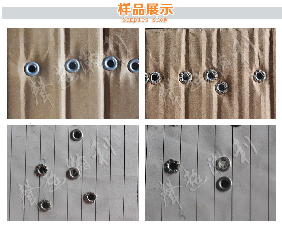 適用行業(yè) 適用于空心釘、中空釘之鉚合。屬鋁箱、化妝箱、珠寶盒等機(jī)器; 皮帶接頭、皮包扣帶等均可使用.