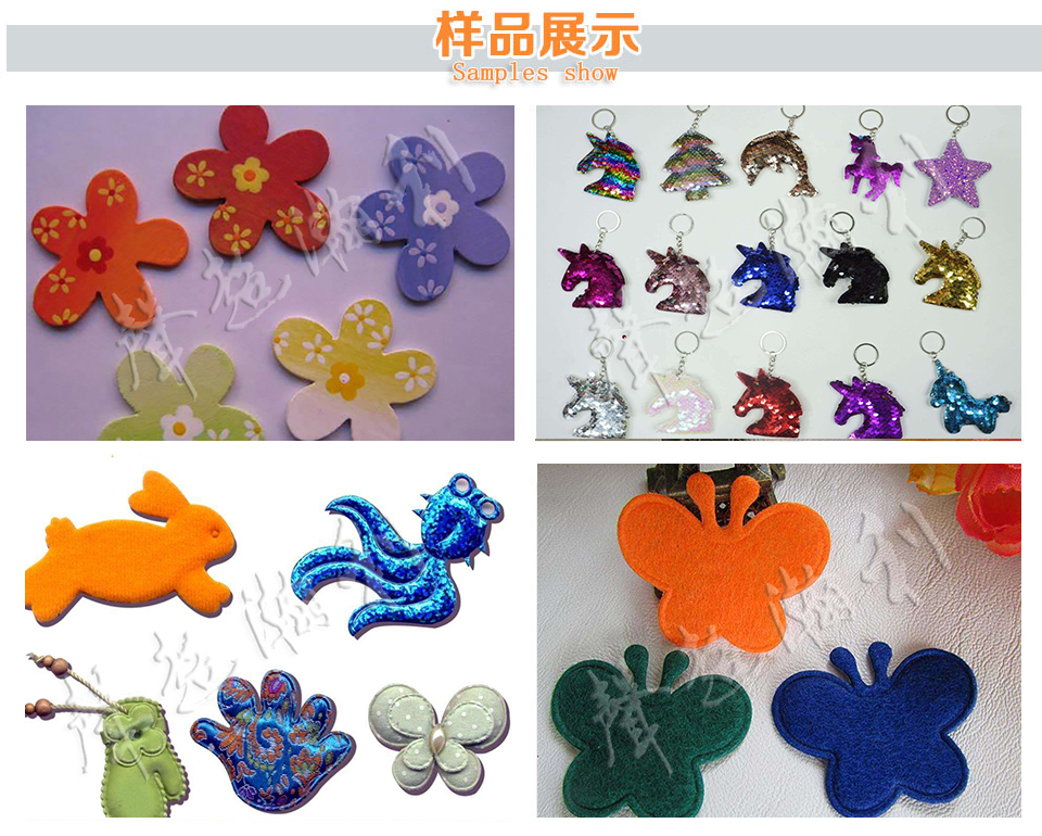6、用超聲波原理將雙層或單層化纖布料加海綿或噴膠綿沖成一個個動物、花朵等物品.